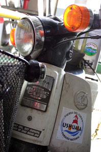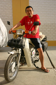 Mars 2005 / Décidément, les petits Honda Cup inspirent de grands voyages! Après les deux Hollandais Dirk et Sander (lire portraits 6a et 6b ci-dessous), nous avons rencontré un autre "marathonien" sur deux roues. Nom: Fuminori. Prénom: Saito. Âge: 30 ans. Lieu et date de de départ: Buenos Aires, 9 janvier 2005. Destination: Alaska. Situation au 18 mars 2005: 12'000 km parcourus!"Je pars aujourd'hui de Pisco pour Lima. Il va me falloir un peu plus de trois heures, avec ma vitesse de croisière de 70 km/h". Les 4 litres de son réserrvoir, assurent à Saito une autonomie de base de 180 kilomètres. "En Patagonie, pour tenir entre deux pompes à essence, j'avais deux petits bidons de secours". Les deux Hollandais qui ont fait le même parcours que lui mais à l'envers, il en a entendu parler. "Mais je n'avais pas leur site internet. C'est formidable que vous puissiez me le donner. Ils roulent des 50 cc. Moi j'ai préféré le 90, car je voulais pouvoir monter sur la cordillère. Pour passer par San Pedro de Atacama, j'ai roulé à presque 4000 mètres!". Du pays des gauchos, Saito a