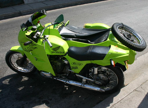 Vert pomme pour ce side-car venu de l'Est, et rebaptisé Honda par