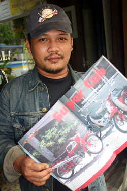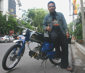 petit bar devant lequel elle trône lorsqu'elle est de sortie. Elle n'est pas la seule pièce rare à laquelle Sirachai Tu a redonné son lustre d'antan. Inconditionnel de Honda, passionnés par les anciens modèles, ce Thaïlandais en compte une dizaine d'autres, outre cette Honda Cub 50, dans sa collection. Qui lui a valu cette année de se retrouver à l'honneur d'un magazine spécialisé thaïlandais, dont il garde jalousement une copie. Au fait, pourquoi Honda? "Je les aime, tout simplement...", sourit Sirachai Tu. En ajustant fièrement la casquette toura5.ch de chez 100%Swiss, il a accepté de devenir le deuxième héros de cette saga des Honda autour du monde. Kop khun khrap (merci), Mister Sirachai Tu!